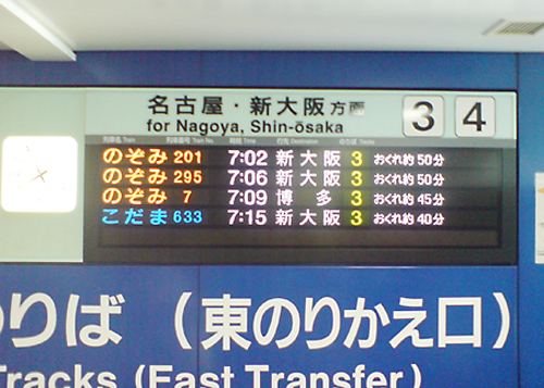 私の乗る予定の「のぞみ」は1時間遅れでした。